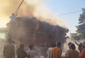सुपौल: ट्रक पर लदी पटुआ में अचानक लगी भीषण आग, लाखों के नुकसान का अनुमान