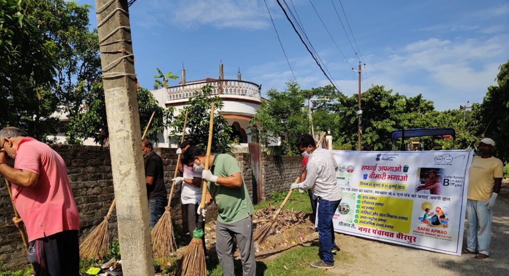 जिले के वीरपुर नगर पंचायत में बुधवार को “सफाई अपनाओ, बीमारी भगाओ” कार्यक्रम के तहत वृहद स्तर पर स्वच्छता अभियान चलाया गया। इस अभियान में नगर पंचायत के कार्यपालक पदाधिकारी मयंक कुमार, उपमुख्य पार्षद, वार्ड पार्षद सहित कई स्थानीय लोग शामिल हुए।