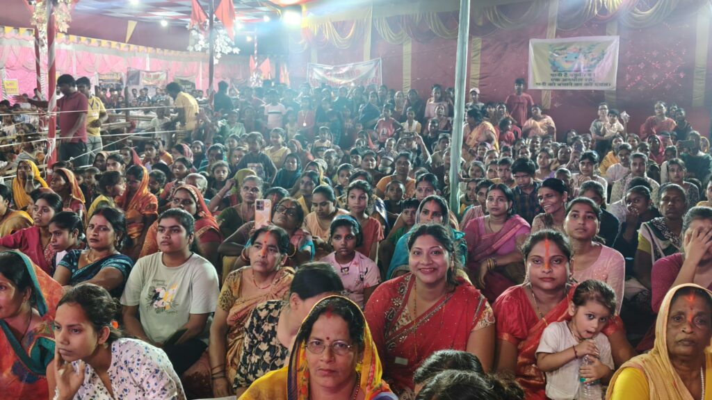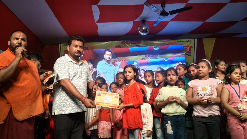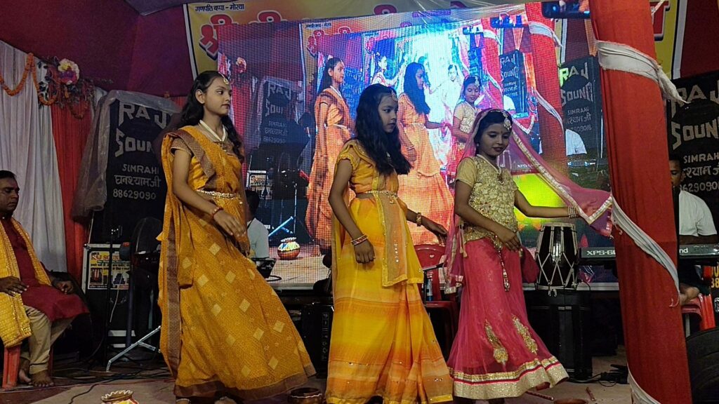 कार्यक्रम की शुरुआत स्थानीय बच्चों द्वारा प्रस्तुत झिझिया नृत्य से हुई। पारंपरिक धुनों पर सजे-धजे बच्चों का यह प्रदर्शन श्रद्धालुओं और दर्शकों के लिए आकर्षण का केंद्र रहा। बच्चों की इस प्रस्तुति ने जहां लोक संस्कृति की झलक दी, वहीं भक्ति भाव का अनोखा वातावरण भी बनाया।