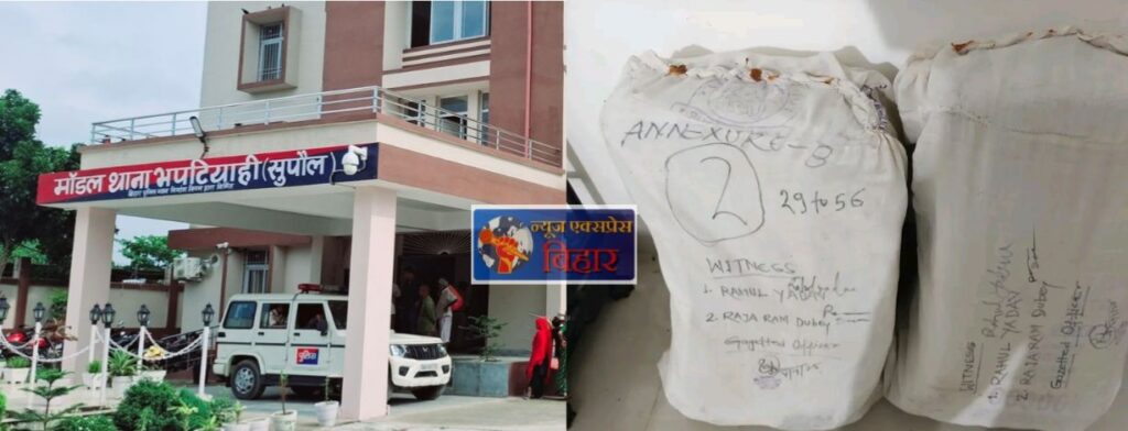 सुपौल: भपटियाही में SSB और पुलिस की बड़ी कार्रवाई, नदी किनारे झाड़ियों से 55 किलो 900 ग्राम गांजा बरामद