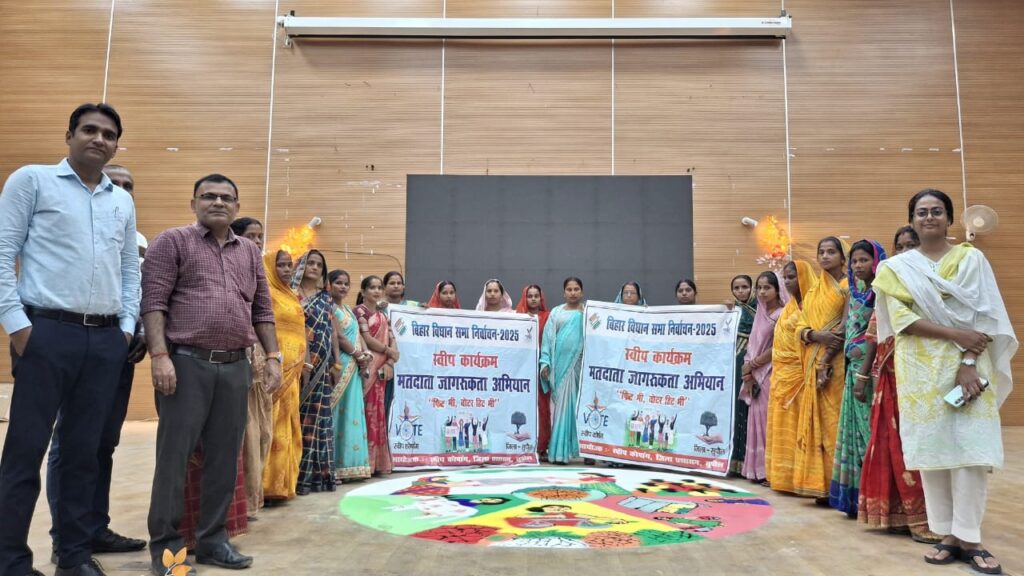 कार्यक्रम के दौरान जीविका दीदियों ने रंगोली के माध्यम से मतदान के महत्व पर जनहित संदेश भी प्रस्तुत किए, जिससे महिलाओं की रचनात्मकता और लोकतंत्र के प्रति जागरूकता का सुंदर संगम दिखाई दिया।