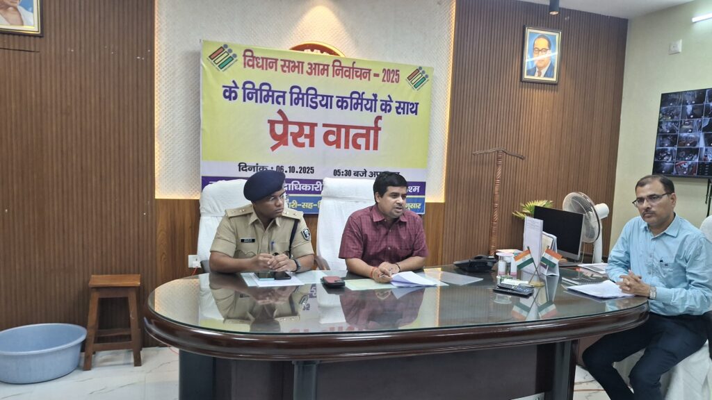 इस अवसर पर सोमवार की शाम 5:30 बजे जिला निर्वाचन पदाधिकारी-सह-जिलाधिकारी सावन कुमार एवं पुलिस अधीक्षक सारथ आर.एस. ने संयुक्त रूप से मीडिया प्रतिनिधियों को संबोधित करते हुए आगामी विधानसभा चुनाव की तैयारियों की जानकारी दी।