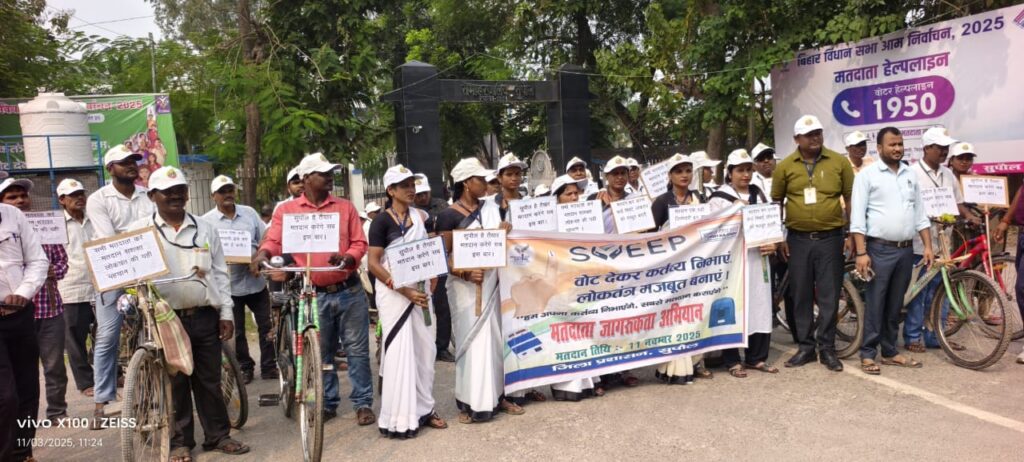 इस अवसर पर अधिकारियों ने बताया कि साइकिल रैली का मुख्य उद्देश्य आगामी 11 नवम्बर 2025 को होने वाले विधानसभा चुनाव में अधिक से अधिक मतदाताओं की सहभागिता सुनिश्चित करना है। रैली के माध्यम से आम लोगों को निर्भीक, निष्पक्ष एवं शत-प्रतिशत मतदान के लिए प्रेरित किया गया।