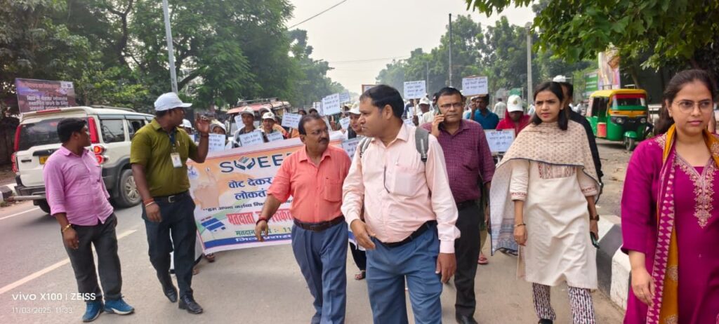 रैली में बड़ी संख्या में विकास मित्र, स्वयंसेवी और छात्र-छात्राएं शामिल हुए, जिन्होंने हाथों में नारे लिखी तख्तियां लेकर लोगों से लोकतंत्र के महापर्व में भाग लेने की अपील की।