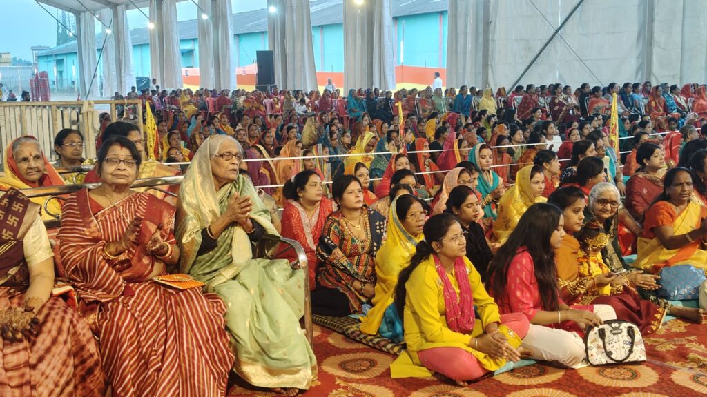कथा के प्रथम सत्र में पूज्य महाराज जी ने भगवान शिव और माता पार्वती के विवाह की कथा का गूढ़ भावार्थ प्रस्तुत किया। उन्होंने बताया कि भगवान शिव का जीवन त्याग, तपस्या और वैराग्य का प्रतीक है, वहीं पार्वती प्रेम, समर्पण और भक्ति की मूर्ति हैं। जब दोनों का मिलन हुआ, तो यह संसार के लिए गृहस्थ जीवन की पूर्णता का संदेश था। महाराज जी ने हास्य और व्यंग्य के बीच गहराई से कहा, “देखिए, स्वयं महादेव भी अकेले नहीं रहे। इसलिए गृहस्थ जीवन से भागने की नहीं, उसे शिव-पार्वती की तरह पवित्र बनाने की आवश्यकता है।” इस पर उपस्थित भक्तगण जोरदार तालियों से गूंज उठे।