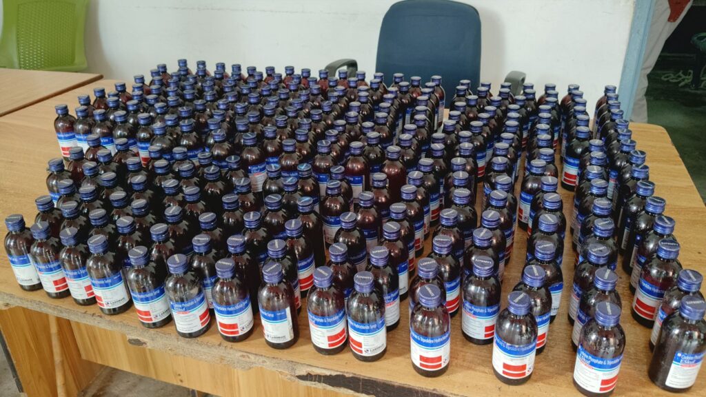 थानाध्यक्ष ने बताया कि तलाशी के दौरान XUV 500 की डिक्की, सीट के नीचे और अन्य हिस्सों से कुल 13 प्लास्टिक बोरे बरामद किए गए। जिसमे ESkuf Codeine Phosphate कंपनी के 3205 पीस, मात्रा— 320 लीटर 500 एमएल कोडिनयुक्त कफ सिरप बरामद हुआ। इसके अलावा आरोपी के पॉकेट से बिना सिम का Vivo कंपनी का मोबाइल फोन भी बरामद हुआ।