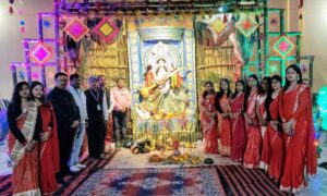 इस दौरान द परफेक्ट इंग्लिश एकेडमी, सिमराही में बांस से बने कमचे, पत्तों और हस्तनिर्मित डिजाइनों से सजाया गया पूजा पंडाल लोगों के आकर्षण का केंद्र बना रहा।