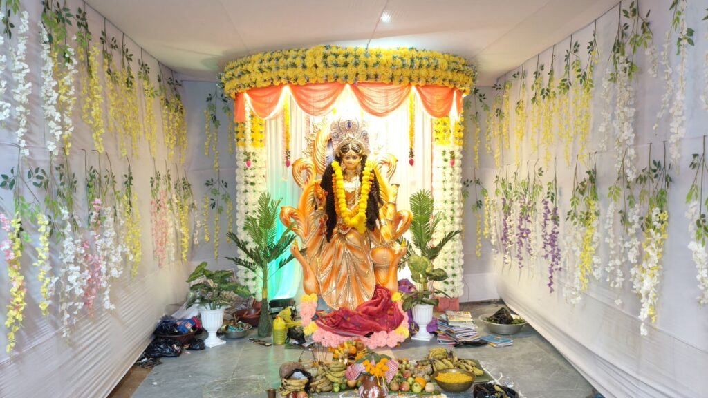 शुक्रवार की अहले सुबह से ही जैसे ही पूजा-अर्चना की शुरुआत हुई, विभिन्न पंडालों से बजते भक्ति गीतों ने पूरे क्षेत्र को भक्तिरस में सराबोर कर दिया। नए-नए वस्त्र पहनकर छात्र-छात्राएं हर्षोल्लास के साथ अपने-अपने घरों से निकलते हुए माता के दर्शन हेतु विभिन्न पंडालों में घूमते नजर आए। बच्चों और अभिभावकों के चेहरों पर विशेष उत्साह और श्रद्धा साफ झलक रही थी।