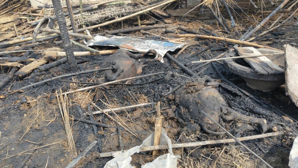सुपौल: हरिपुर में भीषण आग, दो घर राख, दो बछड़ों की मौत, दो लोग झुलसे