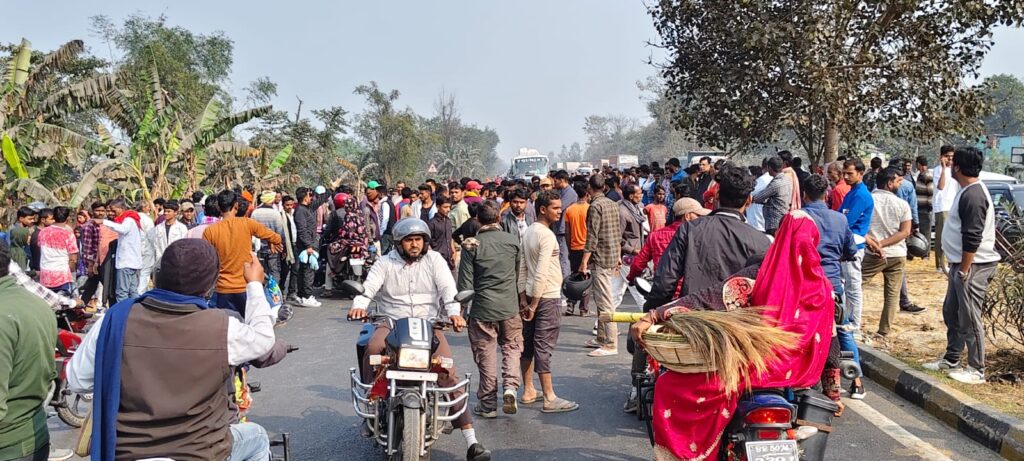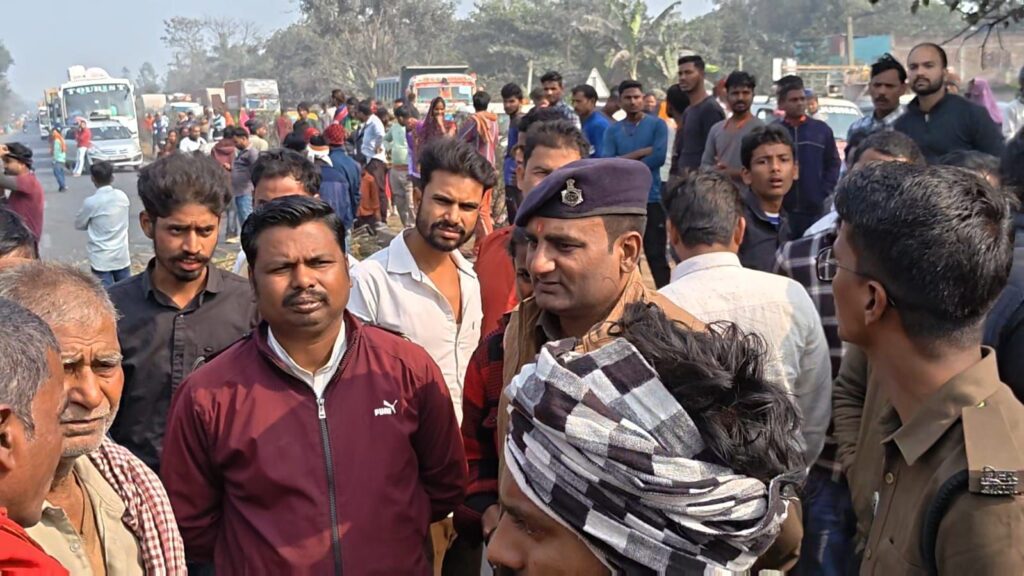 इधर, हादसे की खबर मिलते ही बड़ी संख्या में ग्रामीण घटनास्थल पर जुट गए। NH-27 पर लगातार हो रही सड़क दुर्घटनाओं से नाराज लोगों का गुस्सा इस घटना के बाद फूट पड़ा। आक्रोशित ग्रामीणों ने तेज रफ्तार वाहनों पर सख्त कार्रवाई की मांग को लेकर राम विशनपुर के पास NH-27 को जाम कर दिया। जाम के कारण दोनों ओर वाहनों की लंबी कतारें लग गईं और यात्रियों को भारी परेशानियों का सामना करना पड़ा।