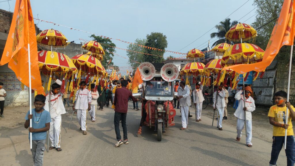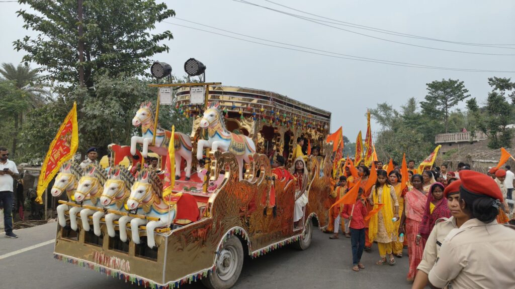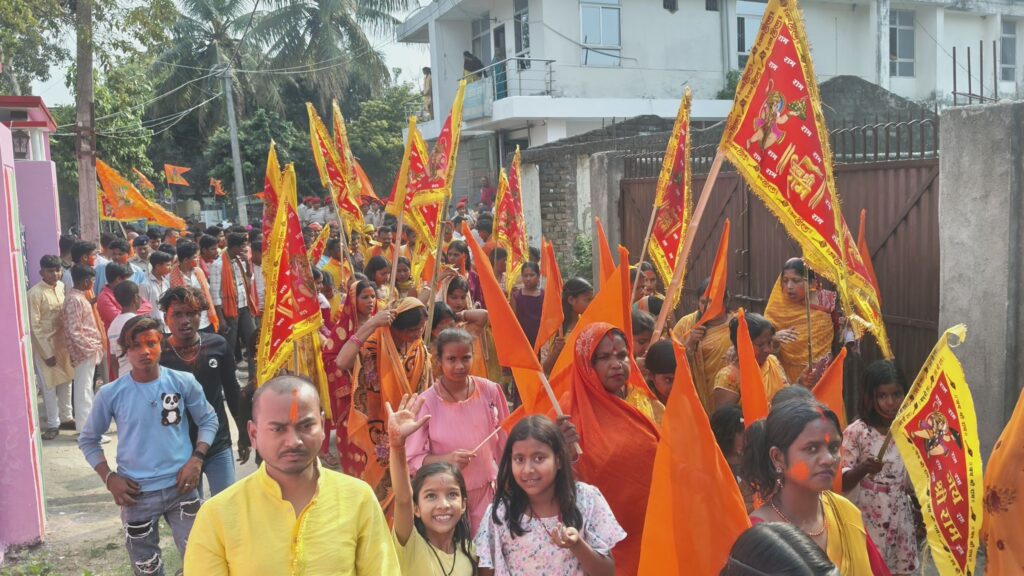 राघोपुर प्रखंड के गणपतगंज में रामनवमी के अवसर पर भव्य शोभायात्रा निकाली गई, जिसमें हजारों श्रद्धालुओं ने भाग लिया। जय श्रीराम के नारों से पूरा क्षेत्र गूंज उठा और कड़ी सुरक्षा के बीच यात्रा शांतिपूर्ण संपन्न हुई।