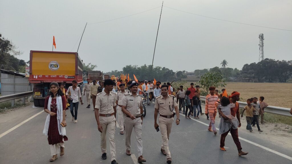 थानाध्यक्ष अमित कुमार राय अपने दर्जनों पुलिस बलों के साथ पूरी यात्रा में मुस्तैद रहे। इसके अलावा एसडीएम नीरज कुमार और डीएसपी सुरेंद्र कुमार भी लगातार निगरानी करते रहे, जिससे कार्यक्रम शांतिपूर्ण ढंग से संपन्न हो सका।