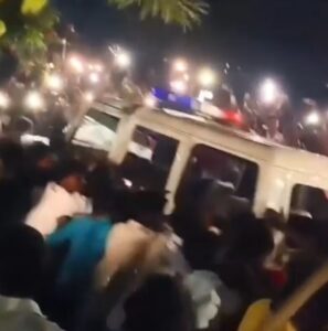 पुलिस गाड़ी में तोड़फोड़ करते आक्रोश लोग