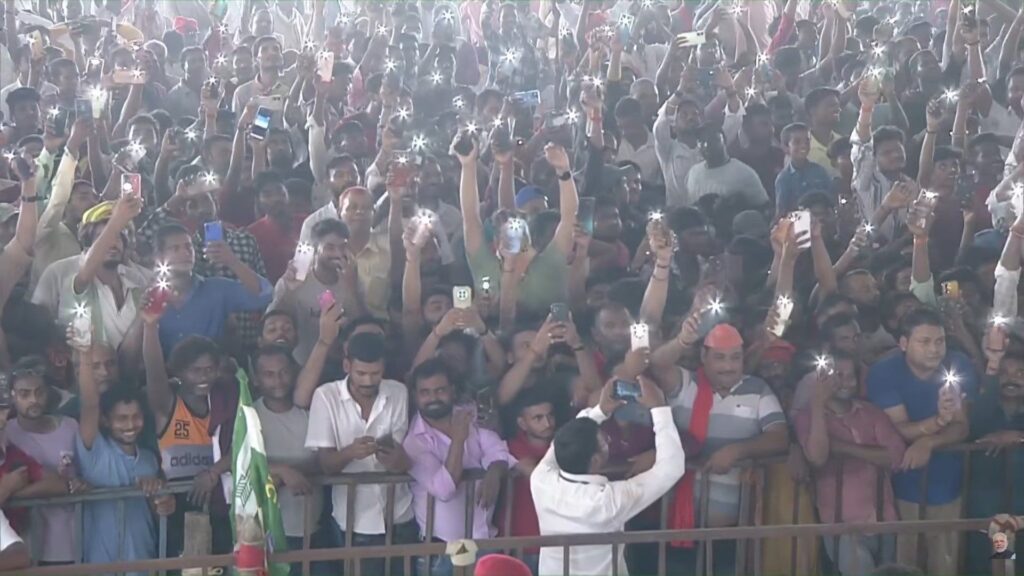 सभा के दौरान प्रधानमंत्री ने लोगों से मोबाइल की फ्लैशलाइट जलाने को कहा। जैसे ही हजारों मोबाइल की रोशनी फैली, पीएम मोदी ने मुस्कराते हुए पूछा — “जब इतनी लाइटें हैं तो आपको लालटेन की जरूरत है क्या?” उन्होंने कहा कि अब बिहार में लालटेन का युग खत्म हो गया है। आज भारत दुनिया में सबसे सस्ता इंटरनेट प्रदान करने वाला देश है। “एक कप चाय जितनी कीमत में एक जीबी डेटा मिलता है। बिहार के युवा आज इंटरनेट से अच्छी कमाई कर रहे हैं।”