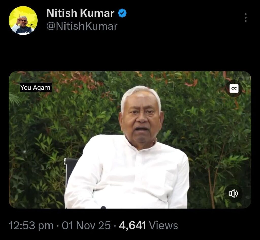 बिहार विधानसभा चुनाव 2025 के पहले चरण (06 नवंबर) और दूसरे चरण (11 नवंबर) से पूर्व मुख्यमंत्री नीतीश कुमार ने बिहार की जनता के नाम एक भावनात्मक वीडियो संदेश जारी किया है। इस संदेश में उन्होंने राज्यवासियों से अपील की है कि वे एक बार फिर राष्ट्रीय जनतांत्रिक गठबंधन (एनडीए) पर भरोसा जताएं और विकसित बिहार के निर्माण में अपनी भागीदारी निभाएं।