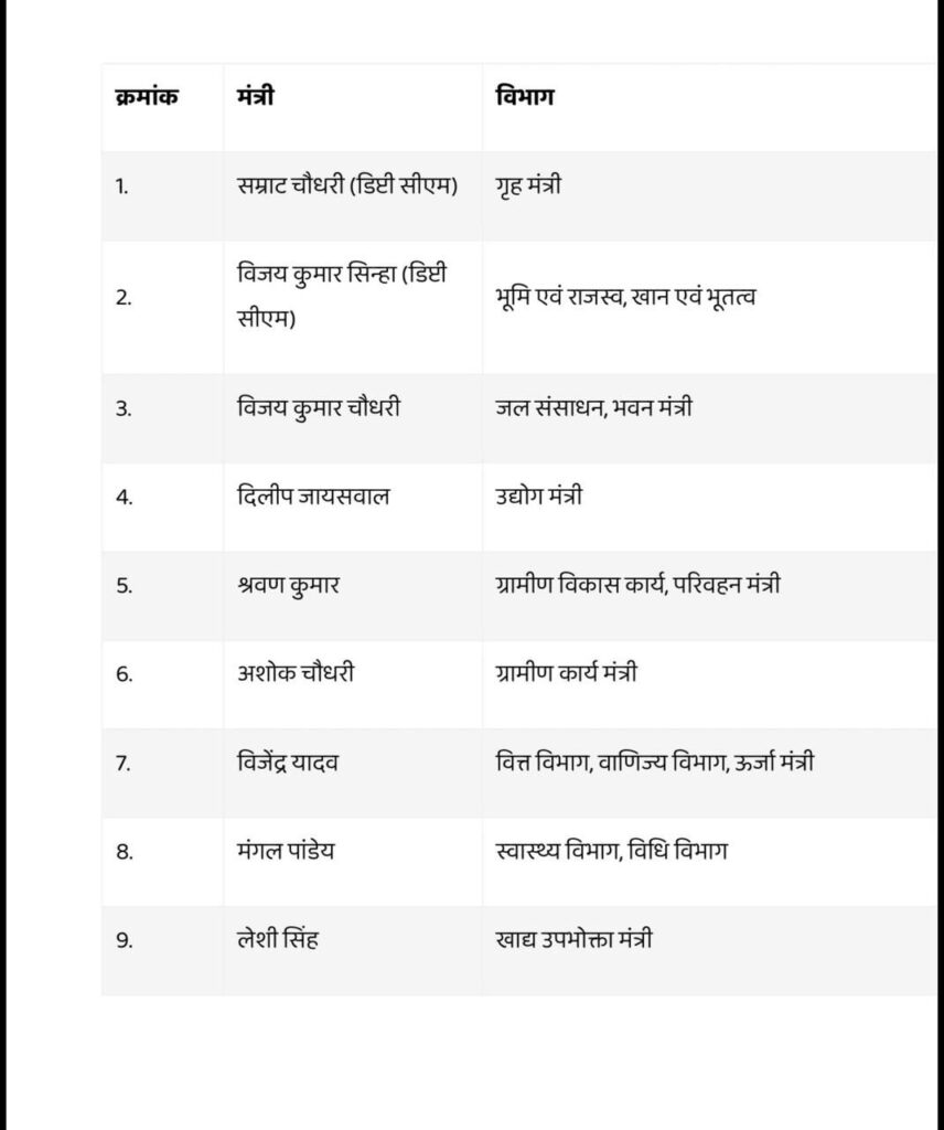 बिहार कैबिनेट में विभागों का पूरा बंटवारा