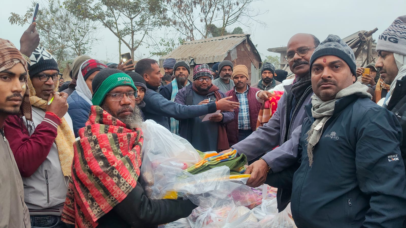 राघोपुर: मोतीपुर में आग पीड़ितों को युवा संघ ने बांटी राहत सामग्री