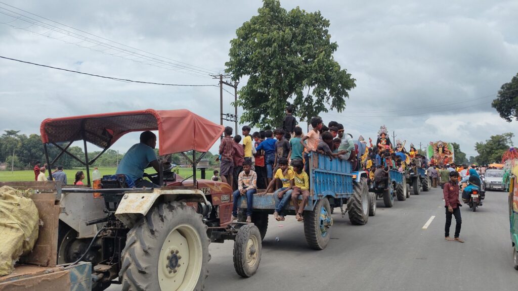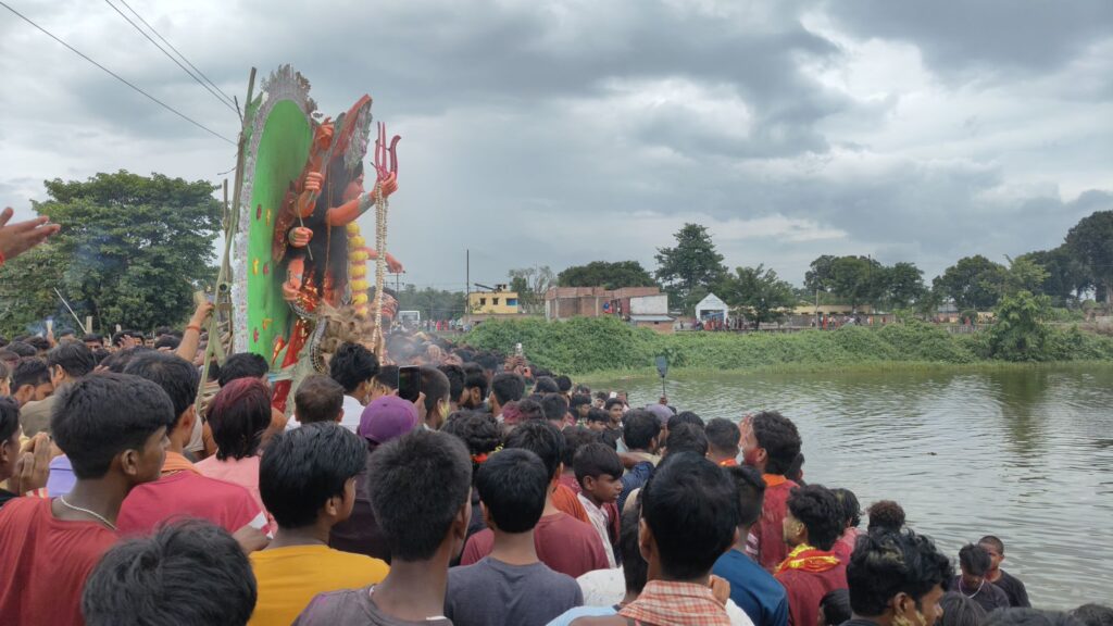 गाजे-बाजे और ढोल-नगाड़ों की थाप पर निकली शोभायात्रा में हजारों की संख्या में श्रद्धालु शामिल हुए। शोभायात्रा मंदिर से निकलकर गोल बाजार, मारवाड़ी मोहल्ला, धोबियाही टोला, गणपतगंज बाजार होते हुए राजाकालीन राज पोखर तक पहुंची, जहां पारंपरिक विधि-विधान के साथ मां दुर्गा की प्रतिमा का विसर्जन किया गया। इस दौरान पूरा क्षेत्र जय माता दी के गगनभेदी जयकारों से गुंजायमान रहा।