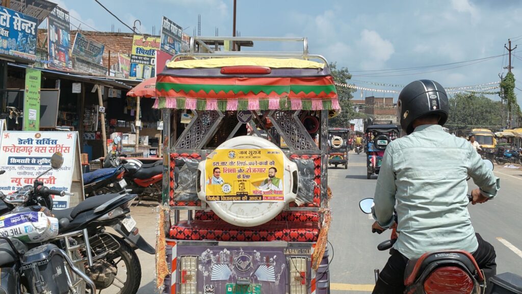 ई रिक्शा पर लगा राजनीतिक पोस्टर